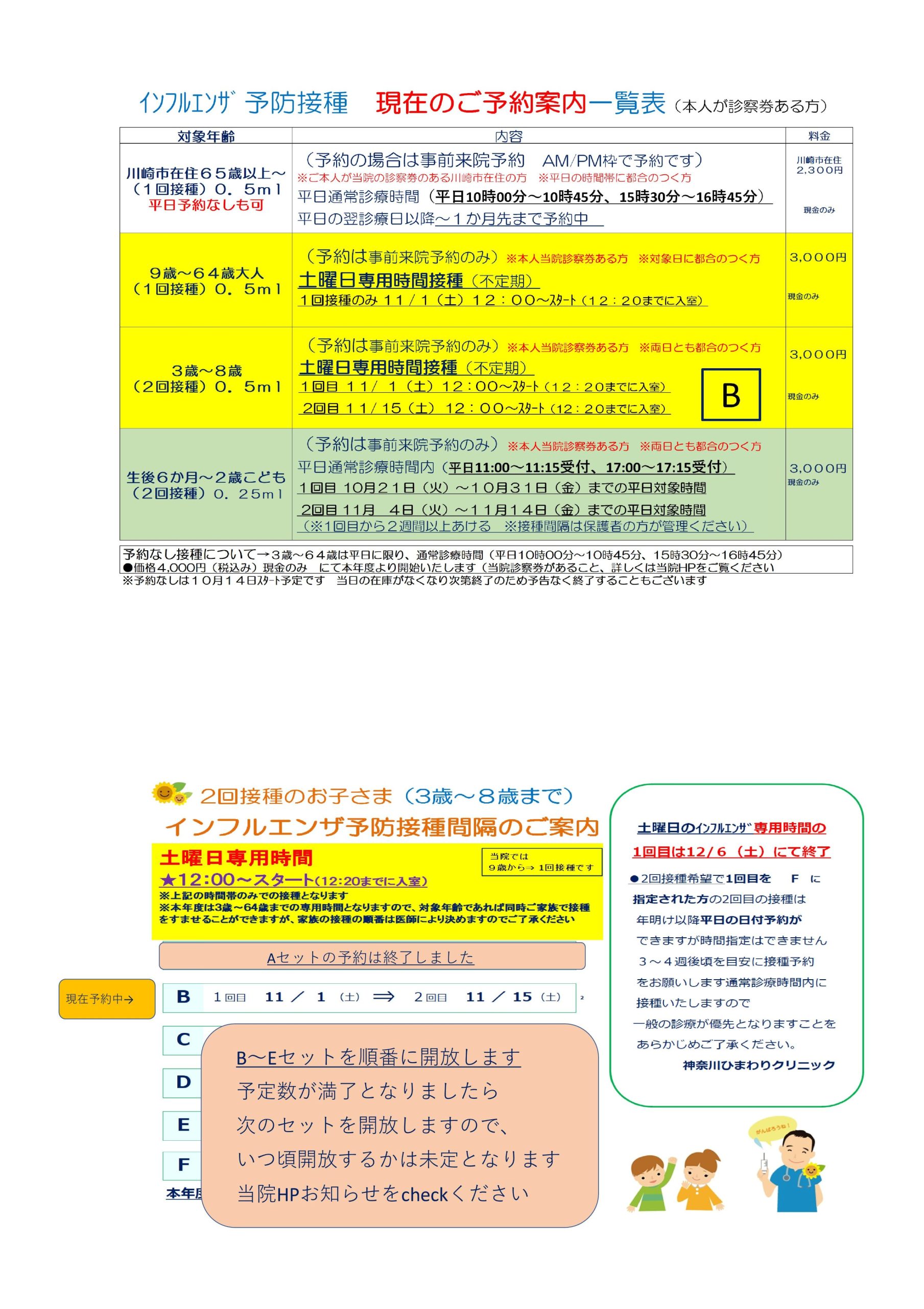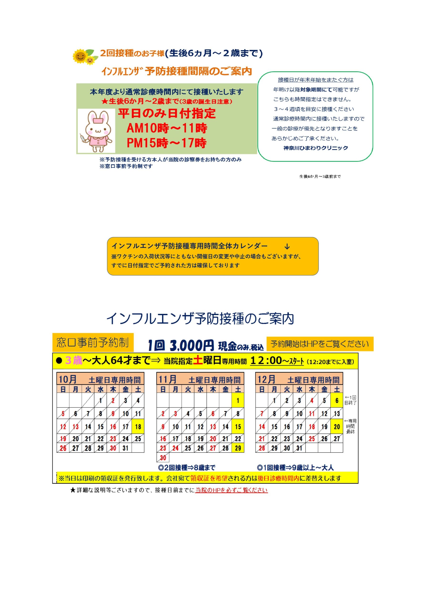 神奈川ひまわりクリニック > クリニックからのお知らせ > インフルエンザ予防接種(64歳まで)のご案内② 現在の予約案内