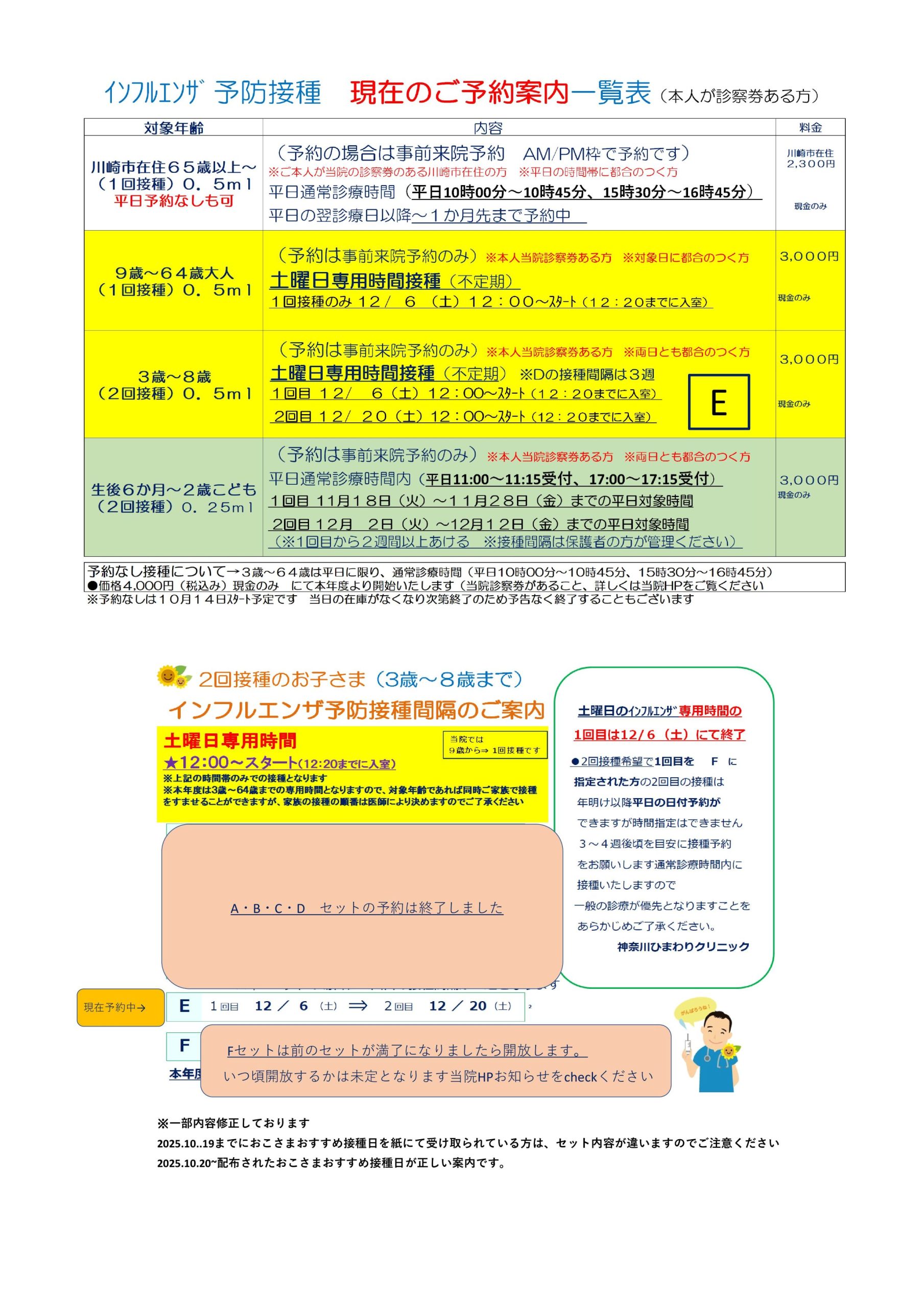 神奈川ひまわりクリニック > クリニックからのお知らせ > インフルエンザ予防接種(64歳まで)のご案内② 現在の予約案内